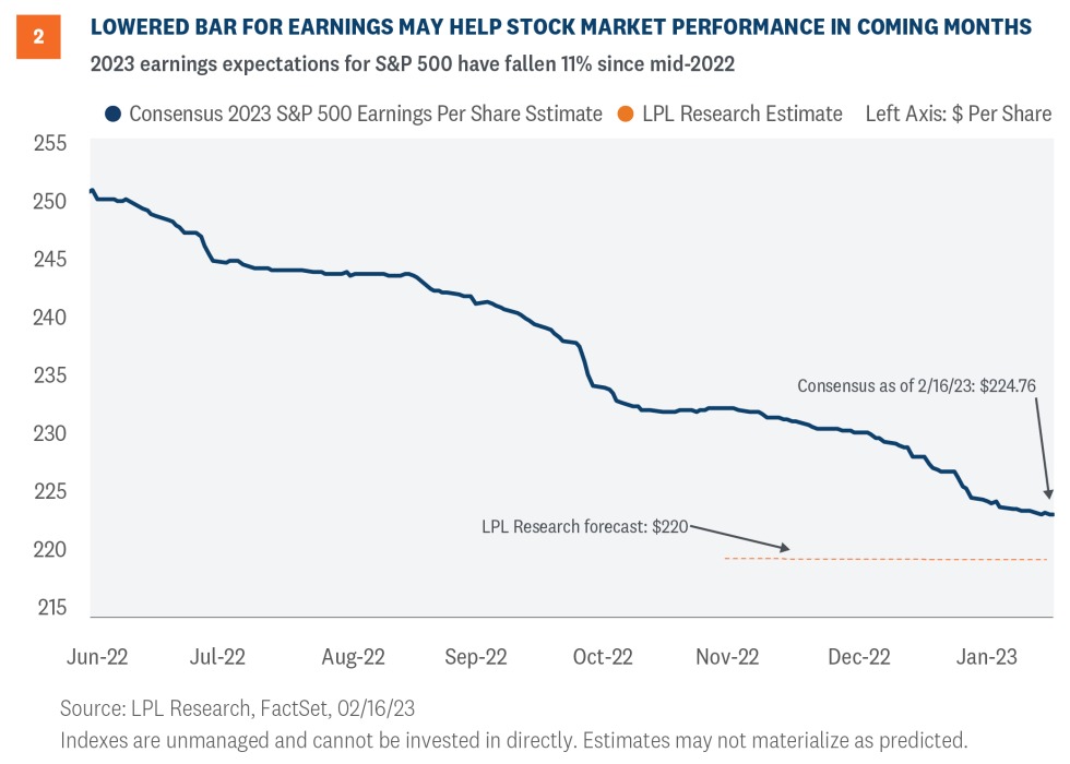 It’s difficult for stocks to sustain moves higher as estimates are coming down. However, we believe lowering the bar sets up potential gains for stocks later this year as estimates stabilize, or potentially even start moving higher, and earnings growth resumes.